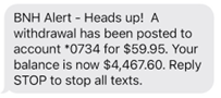 Stay informed on account activity and events with real-time account alerts. With over 30 alerts to choose from, there’s bound to be an alert that will help you improve your insight into your accounts. Alert examples include low balance, transaction exceeds defined threshold, a check is clearing, a CD is maturing, and more.
