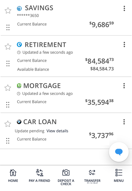 Account Aggregation allows users to view all their account balances and transactions in one central location. Examples include accounts at other financial institutions, investment accounts, loans, credits cards, retirement accounts and more.